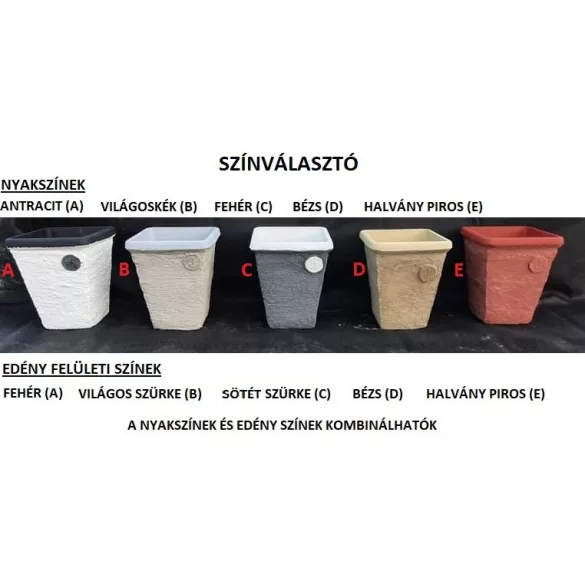 Olivo kicsi kaspó Nyakszín * Antracit (A) Beige (D) Világos kék (B) Halvány piros (E) Edény szín * Világos szürke (B) Sötét szürke (C) Beige (D) Halvány piros (E) Edény alsó kifúrás * Nem kérek Kérek (+300 Ft) Ár Mennyiség * Kosárba Ár: 22 990 Ft 45l